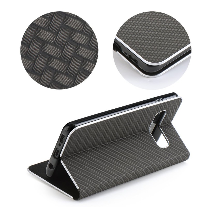 Eleganckie etui do telefonu Luna Book to połączenie ochrony i elegancji. Pokrowiec wykonany jest z trwałego materiału. Posiada miłe w dotyku wnętrze, które chroni przed zarysowaniami oraz praktyczną kieszonkę na karty, banknoty lub dokumenty. Idealnie dopasowana nakładka TPU solidnie utrzymuje telefon wewnątrz. Dodatkowo tylna część jest odginana, co umożliwia wygodne ustawienie pokrowca w pozycji poziomej i komfortowe oglądanie zdjęć czy filmów. Ranty pokrowca wykonane są z mocnego tworzywa, co dodatkowo nadaje etui wytrzymałości.