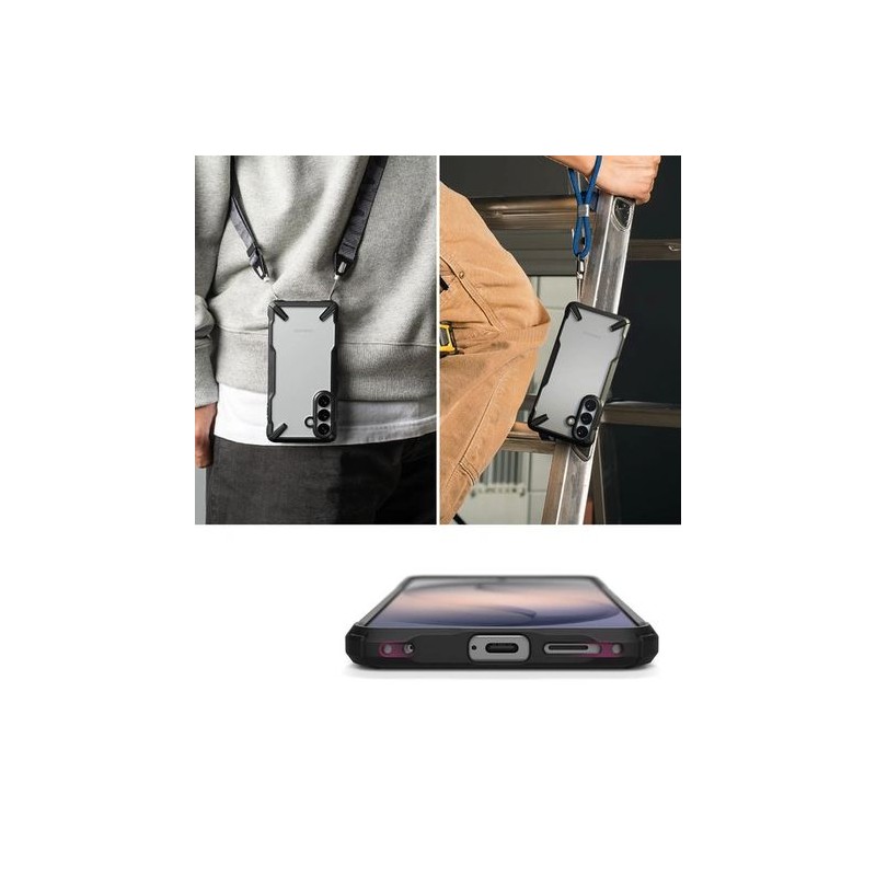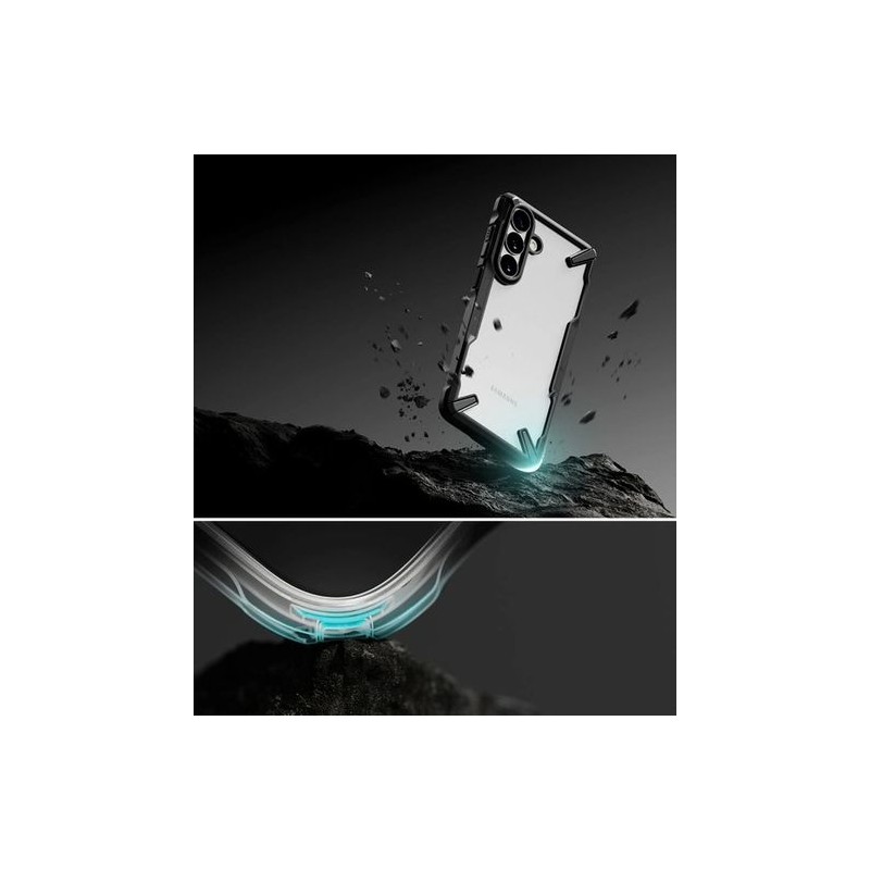 Ringke Fusion X to wzmocnione etui hybrydowe łączące maksymalną ochronę z charakterystycznym designem. Wykonane z dwóch warstw - elastycznego termopoliuretanu (TPU) i twardego poliwęglanu (PC) - zapewnia skuteczną ochronę przed upadkami i uszkodzeniami. Czarna ramka kontrastuje z przezroczystymi pleckami, tworząc sportowy wygląd i podkreślając oryginalny design telefonu. Lekka konstrukcja zachowuje smukły profil urządzenia, zapewniając jednocześnie pewny i stabilny chwyt.