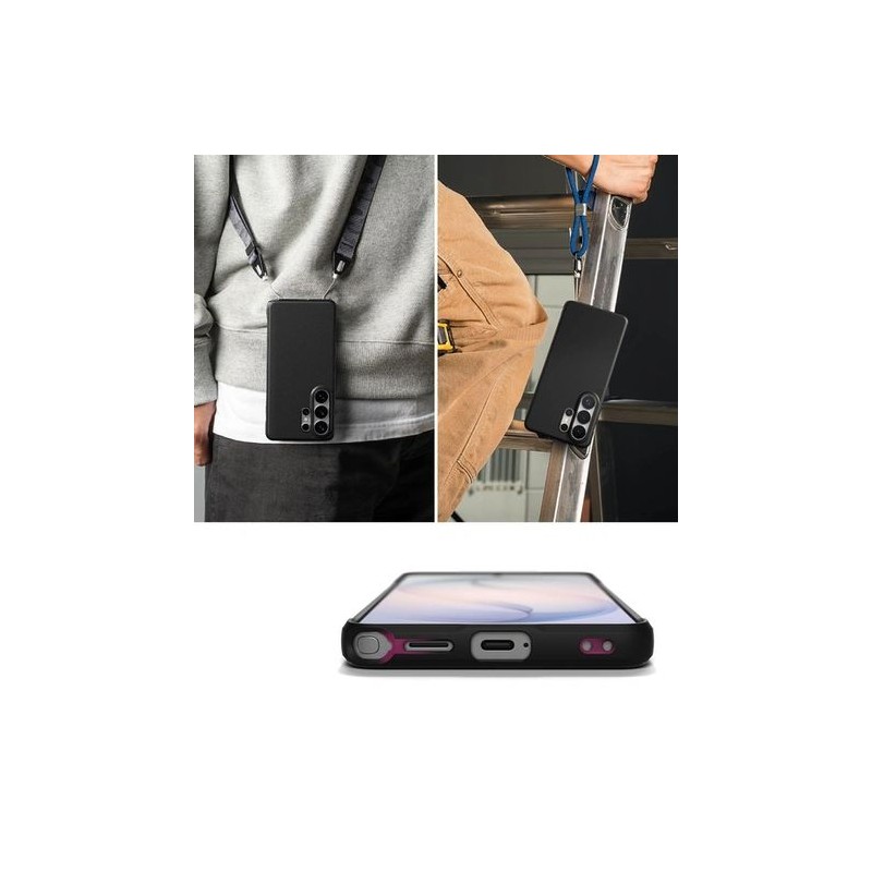 Pokrowiec zapewnia swobodny dostęp do wszystkich interfejsów dzięki precyzyjnym wycięciom na porty oraz zintegrowanym osłonom na przyciski. Chropowate boki sprawiają, że telefon pewnie leży w dłoni, minimalizując ryzyko przypadkowego wyślizgnięcia. Specjalne wycięcia umożliwiają zamontowanie smyczy czy breloka.