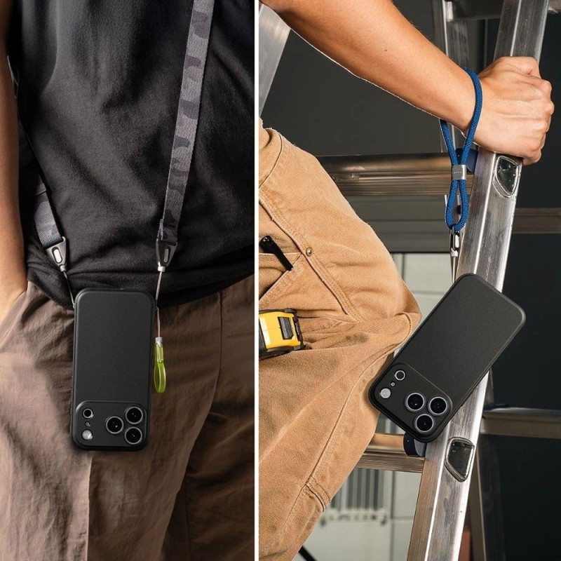 Etui z serii Onyx Magnetic Magsafe od firmy Ringke wykonane jest z miękkiego i wytrzymałego tworzywa termoplastycznego, dodatkowo wzmocnionego na krawędziach by jak najlepiej chronić urządzenie. Nieco podniesiona forma obudowy wokół aparatu i ekranu chroni go przed zarysowaniami, unosząc telefon tuż nad powierzchnią płaską. Posiada osłony na przyciski, wycięcia na porty i smycz.
